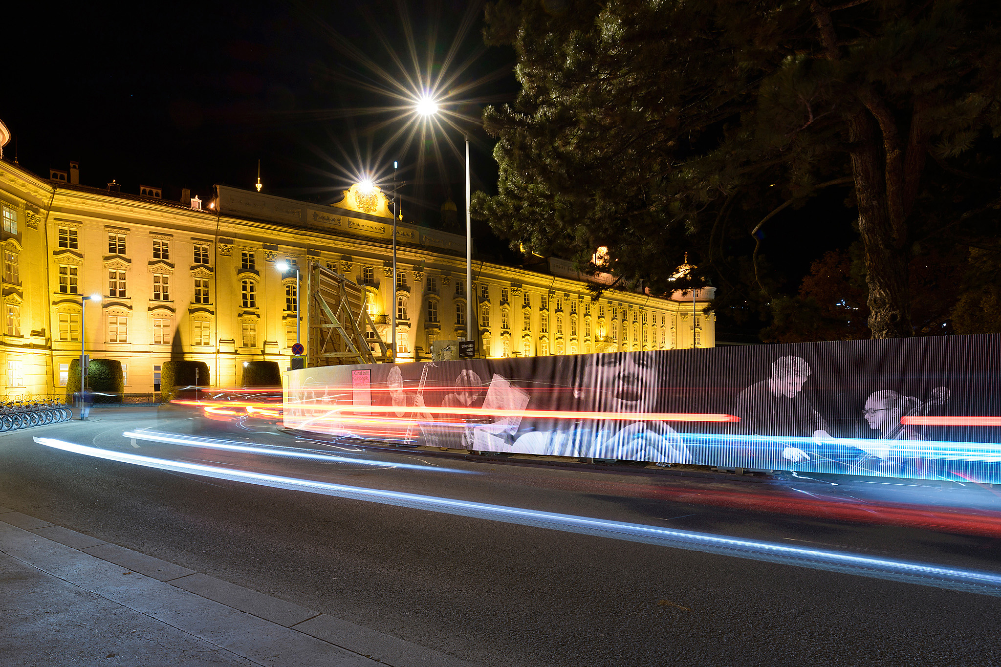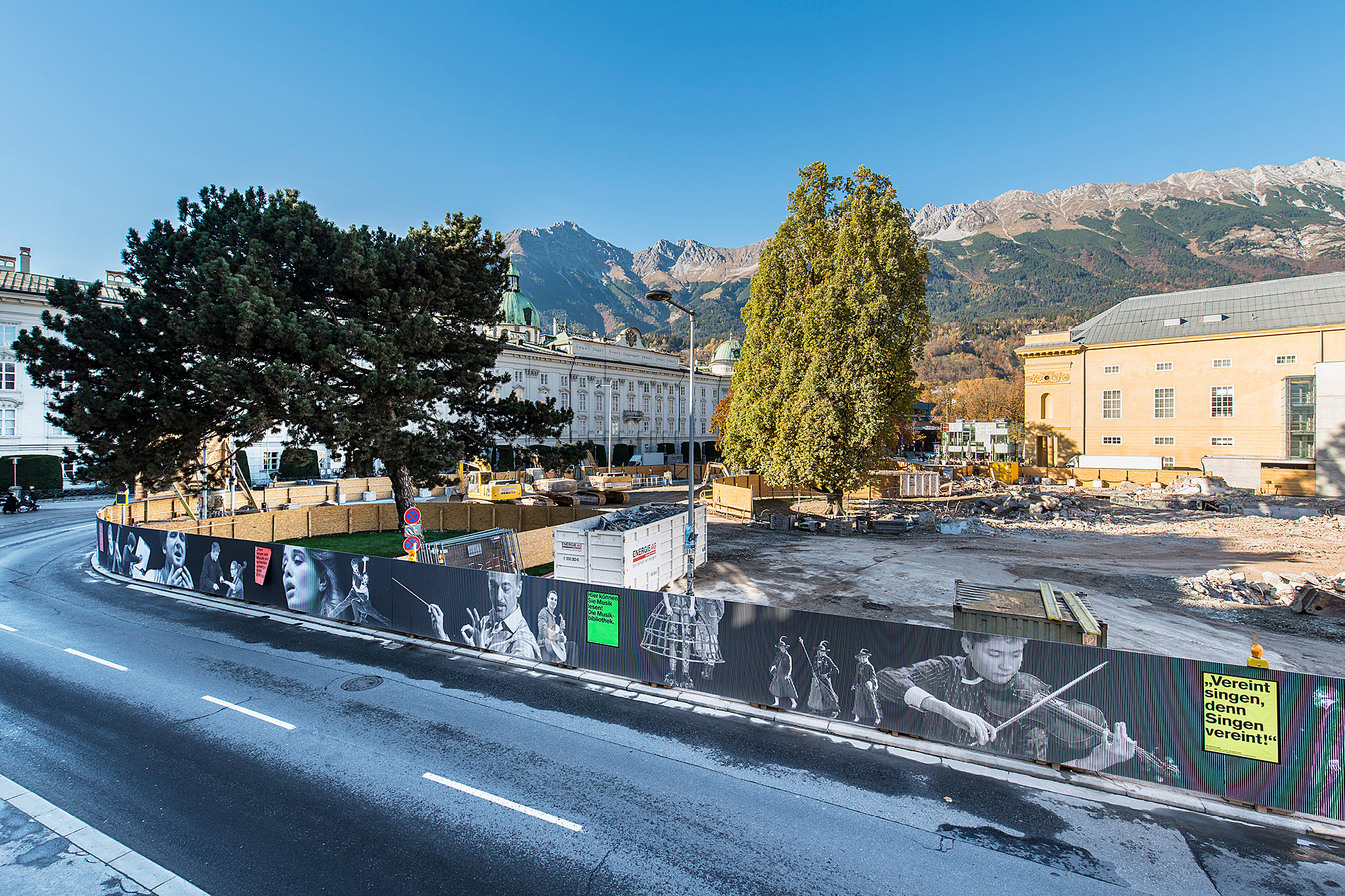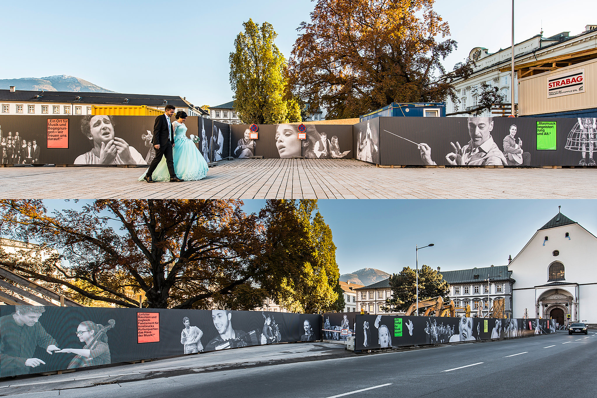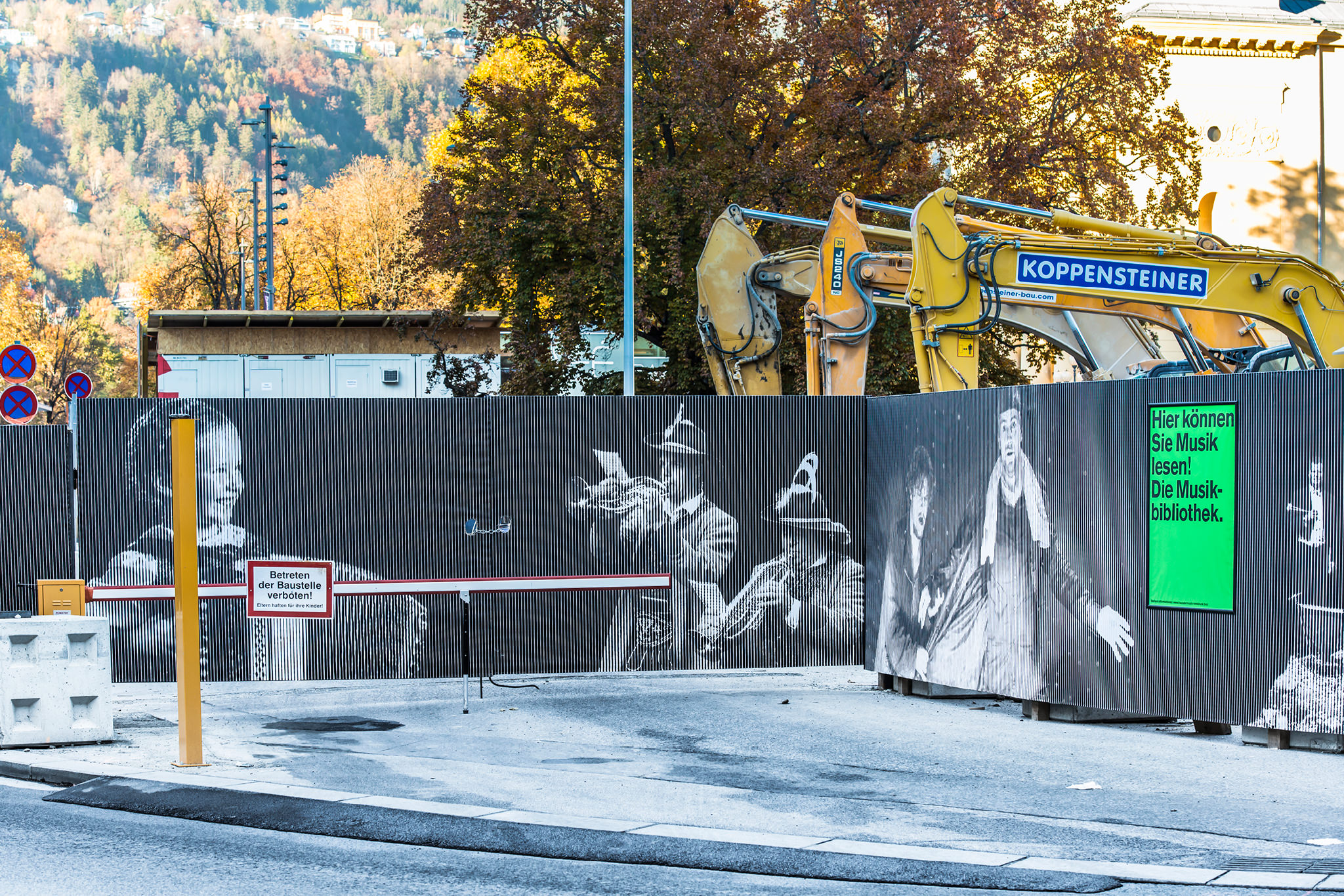 Gestaltung eines ca. 250 m langen Bauzaunes für die Baustelle des Haus der Musik Innsbruck