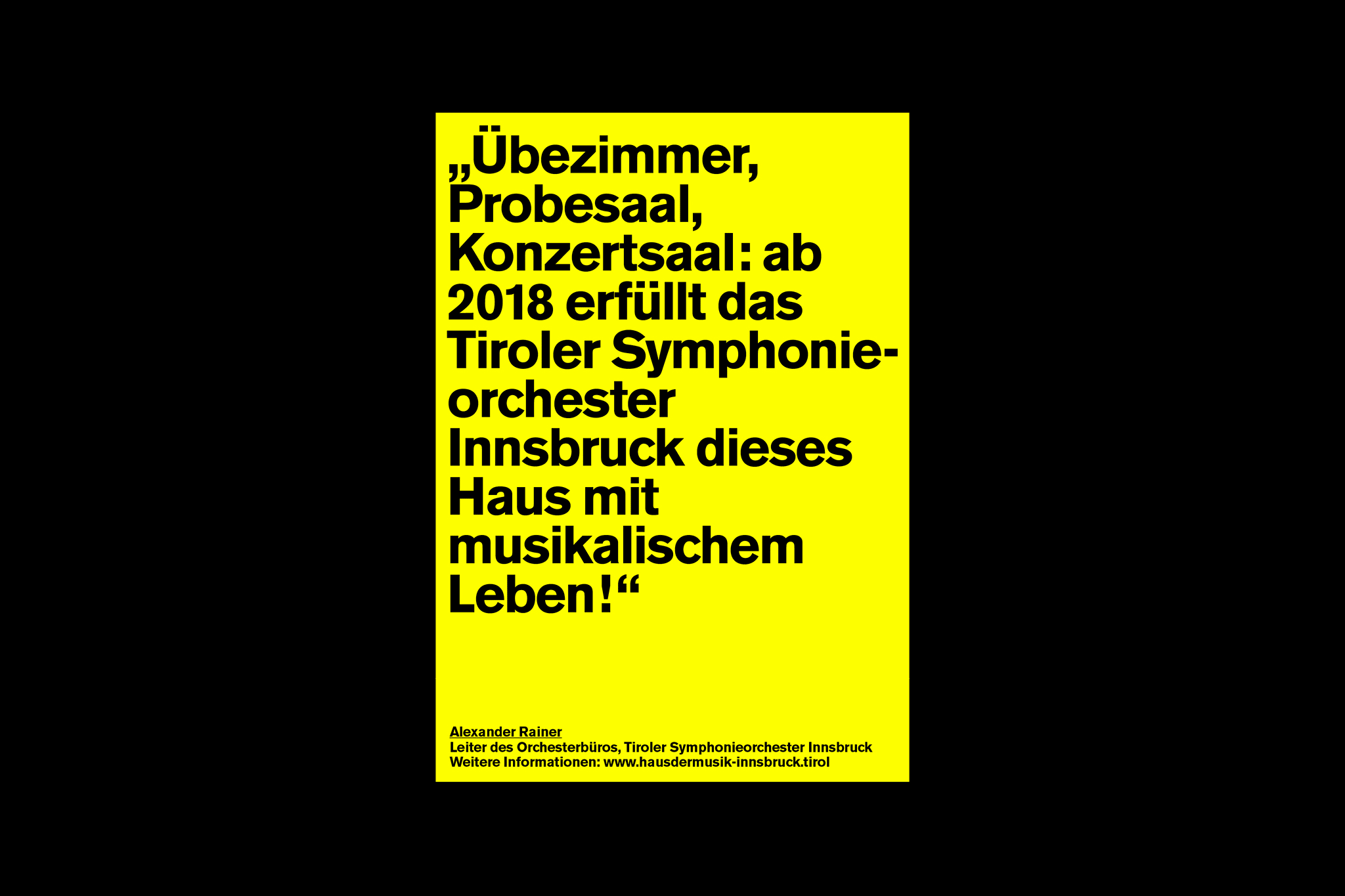 Der Neubau der Haus der Musik Innsbruck führt mehrere wichtige Kulturträger und musikalische Ausbildungsstätten unter einem Dach zusammen – darunter das Tiroler Symphonieorchester Innsbruck, die Kammerspiele, die Universität Mozarteum, das Tiroler Landeskonservatorium, der Tiroler Blasmusikverband und der Tiroler Volksmusikverein.