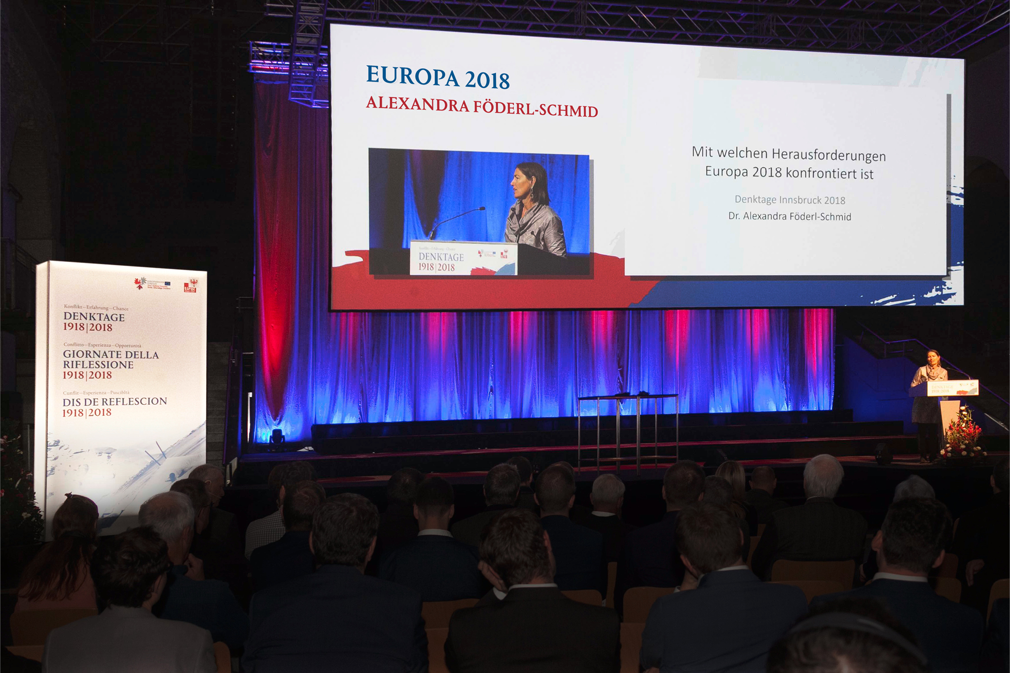 Das Ende des Ersten Weltkriegs und die Ausrufung der Republik Österreich im Jahr 1918 sowie die Ereignisse rund um den „Anschluss“ und die Novemberpogrome von 1938 zählen zu den prägenden Momenten der österreichischen und Tiroler Geschichte. In den folgenden 100 Jahren haben sich Österreich und die Europaregion Tirol zu leistungsfähigen und dynamischen Wirtschaftsräumen entwickelt. Die Denktage 1918 | 2018 greifen diese historischen Zäsuren auf, um Fragen des Erinnerns und Gedenkens zu thematisieren und deren Bedeutung im Kontext gegenwärtiger regionaler Herausforderungen zu reflektieren.