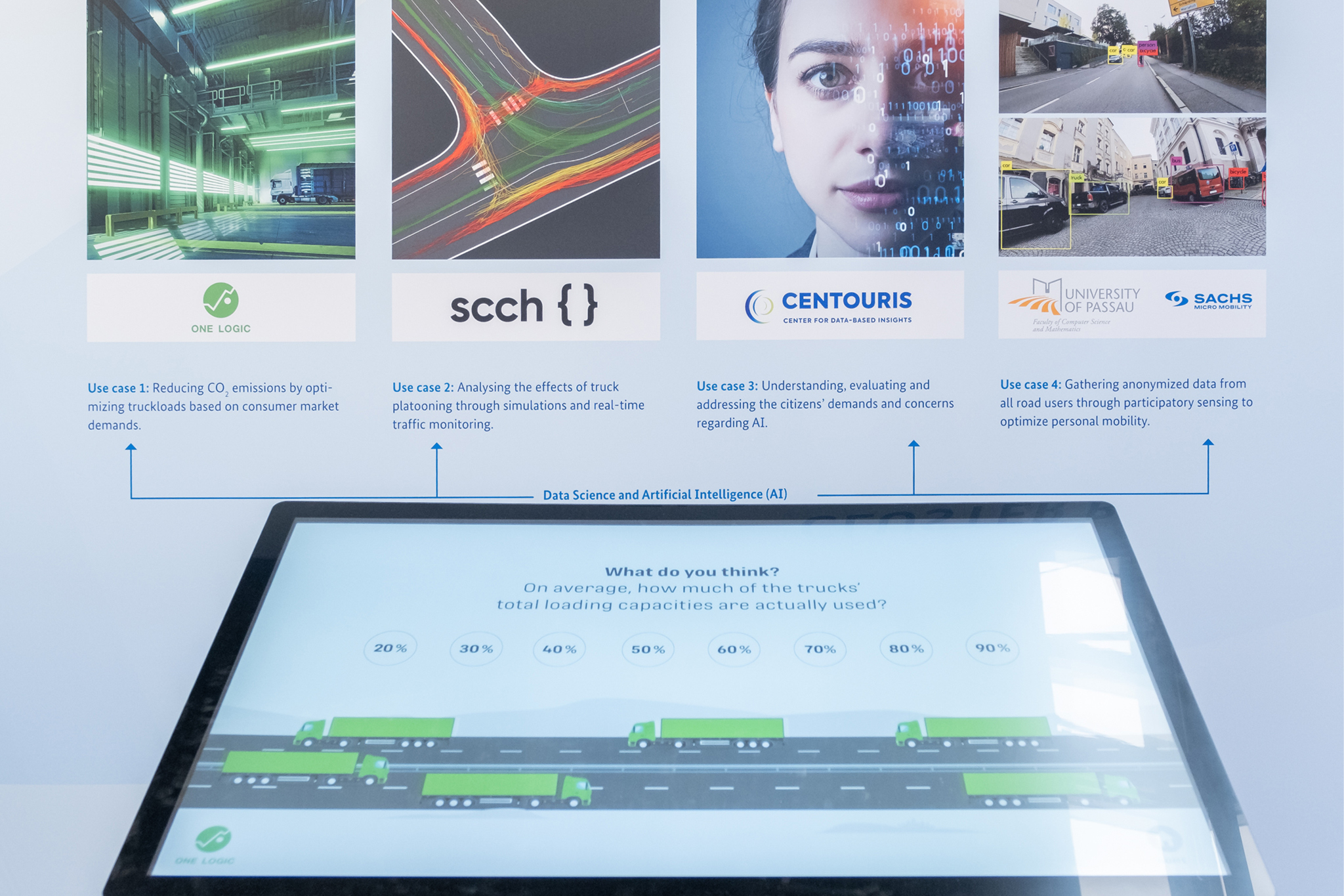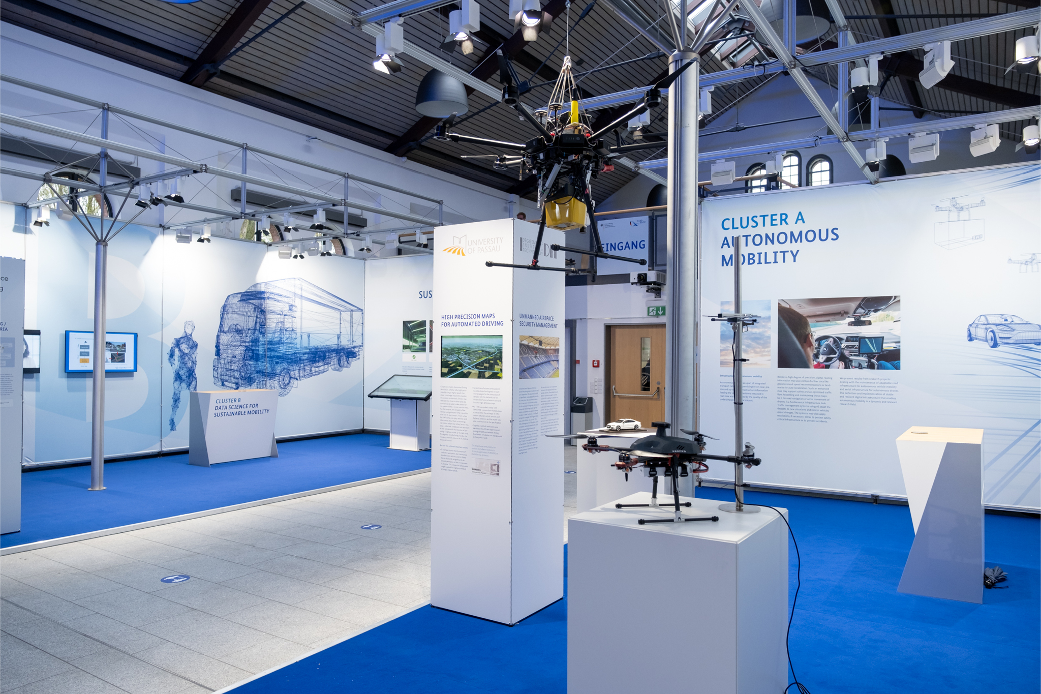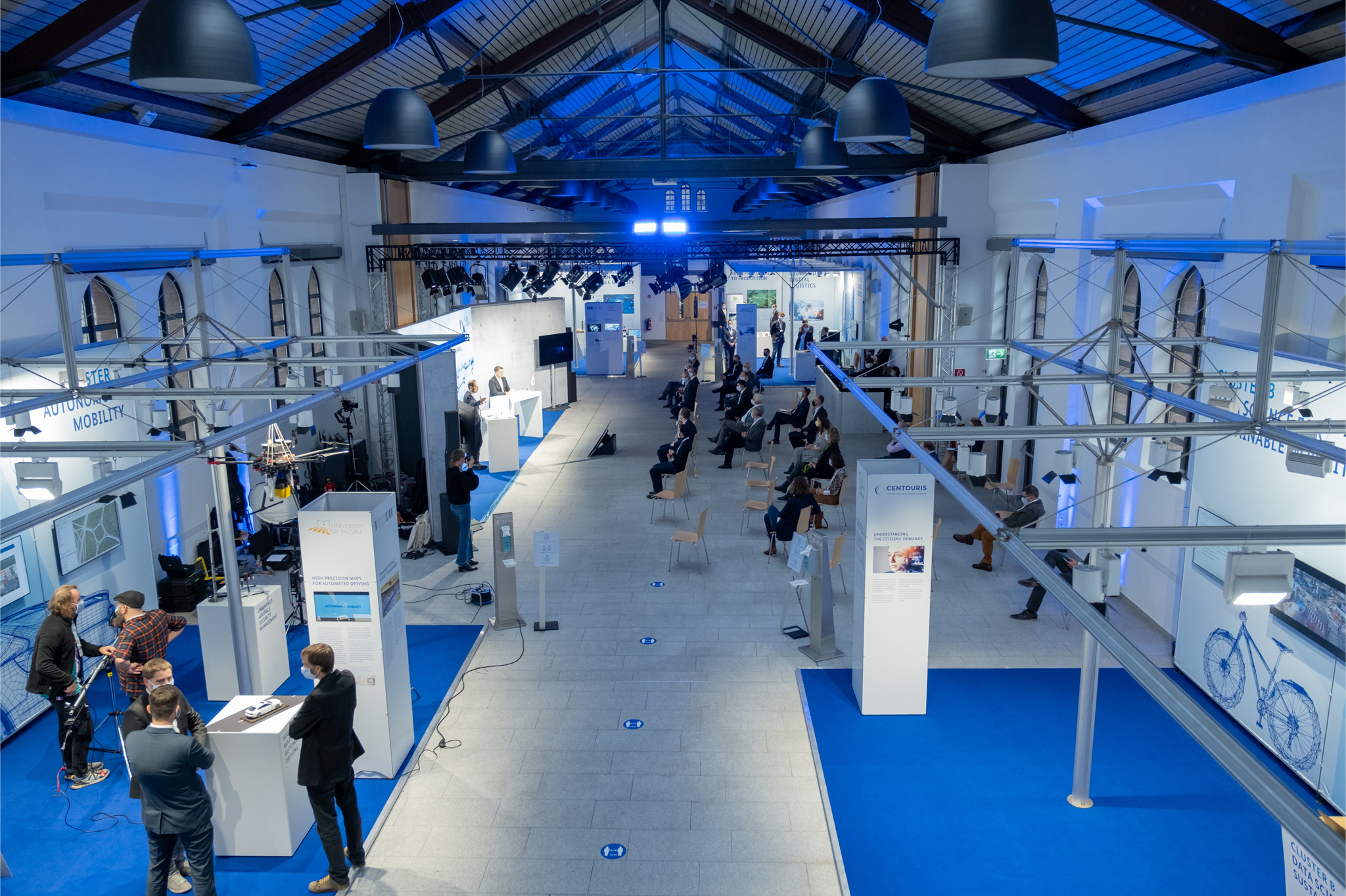 An fünf interaktiven Stationen wurden zentrale Zukunftsthemen vorgestellt: Autonome Mobilität, Data Science, Sustainable Mobility, Digital Logistics sowie Data-Plattformen zur digitalen Transformation von Städten. Die Inhalte wurden durch digitale – zum Teil interaktive – Medien und Exponate anschaulich vermittelt. Ein Highlight war das BMVI-geförderte Projekt KIMoNo, das datenbasierte Mobilitätskonzepte für ländliche Räume erforscht. In Live-Diskussionen brachten sich Studierende der Universität aktiv ein.