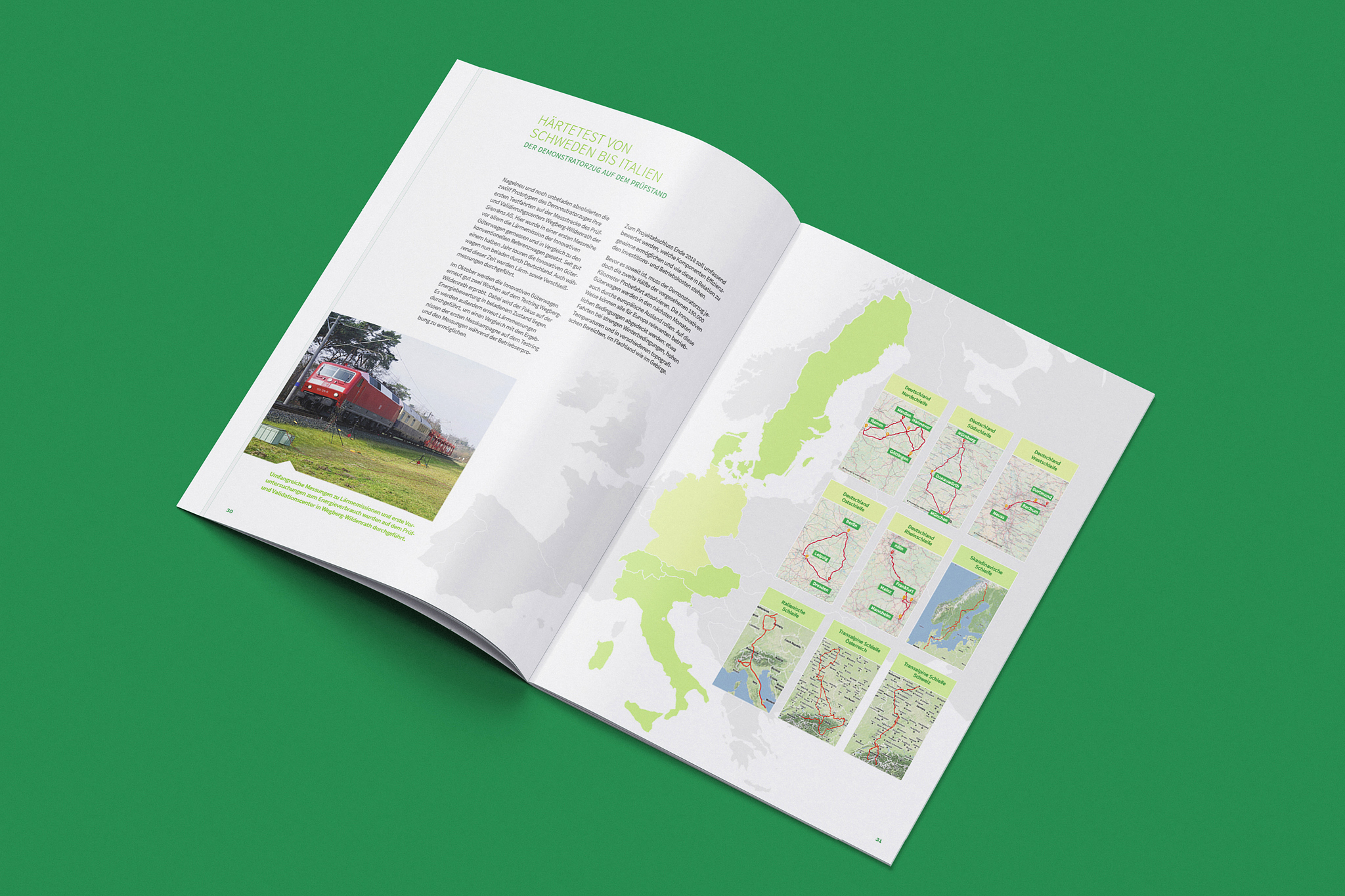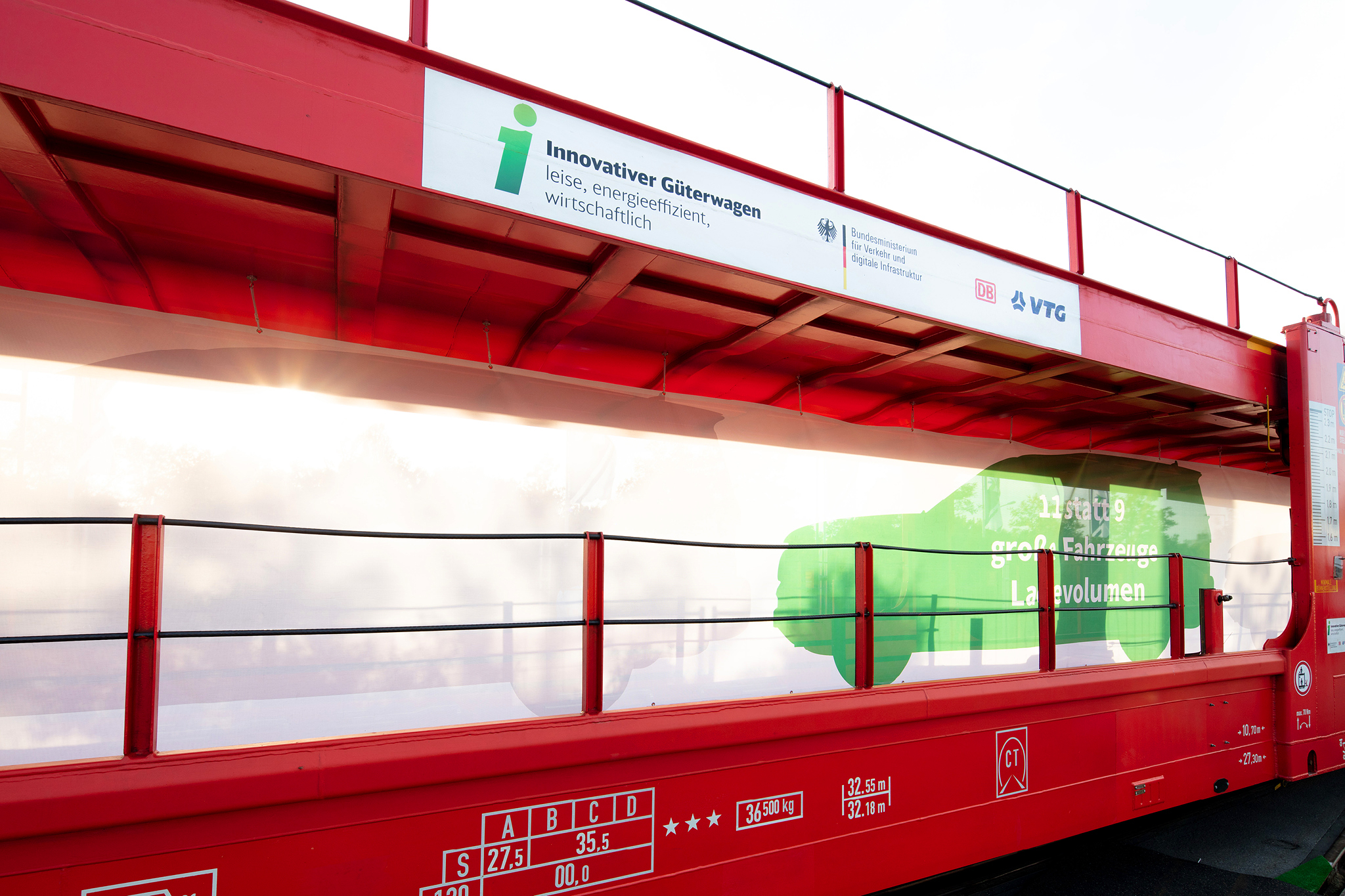 Wie weit lässt sich Energieverbrauch mit verfügbaren Technologien reduzieren? Welche Komponenten sind geeignet, den Lärm um zusätzliche Dezibel zu senken? Vor allem aber: Lassen sich diese Maßnahmen betriebswirtschaftlich tragbar umsetzen? Der Innovative Güterwagen soll auf diese Fragen Antwort geben. Zwölf Innovative Güterwagen aus vier verschiedenen Wagengattungen wurden im Rahmen eines vom BMVI geförderten Forschungsprojektes neu entwickelt, mit verschiedenen innovativen Komponenten ausgestattet und zu einem Demonstratorzug zusammengestellt.