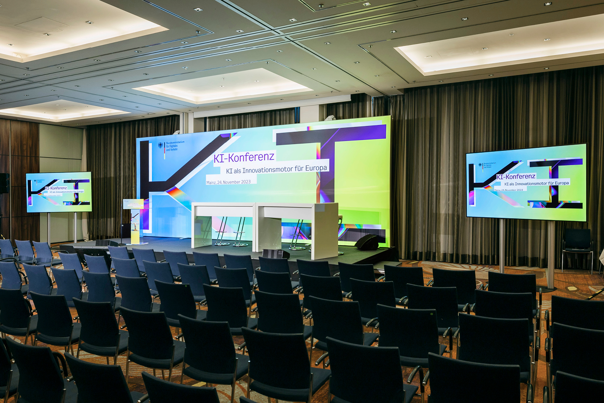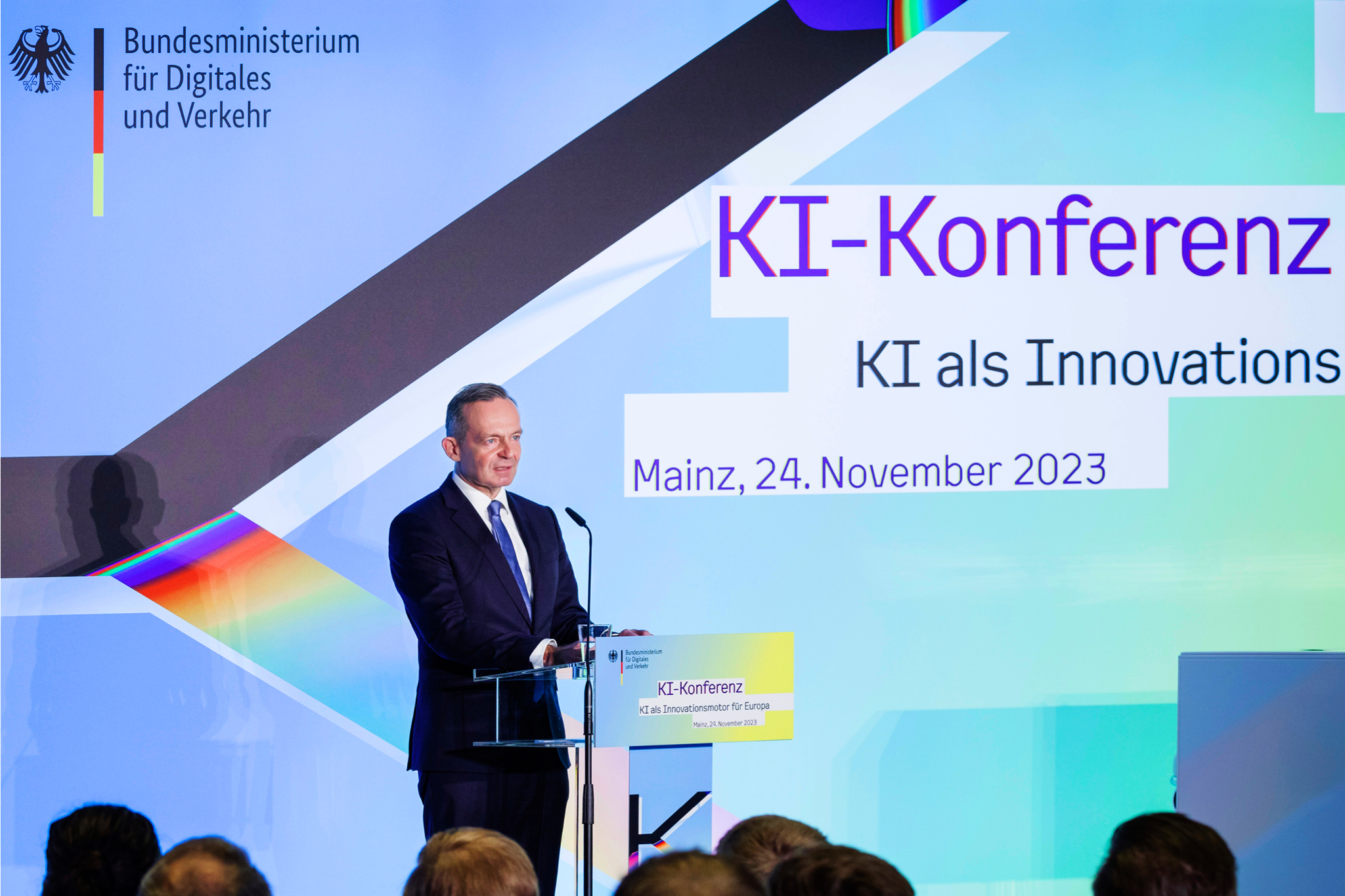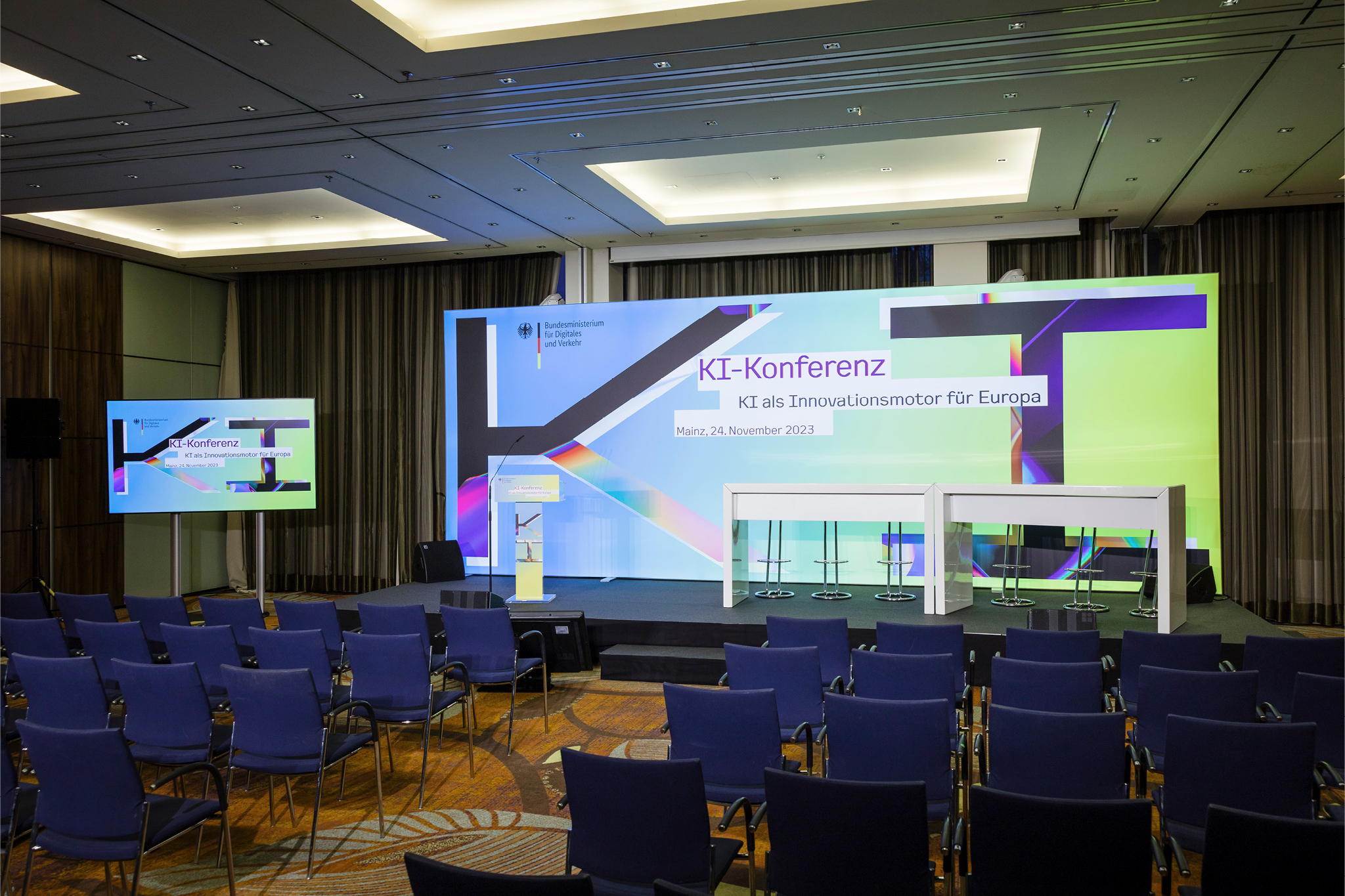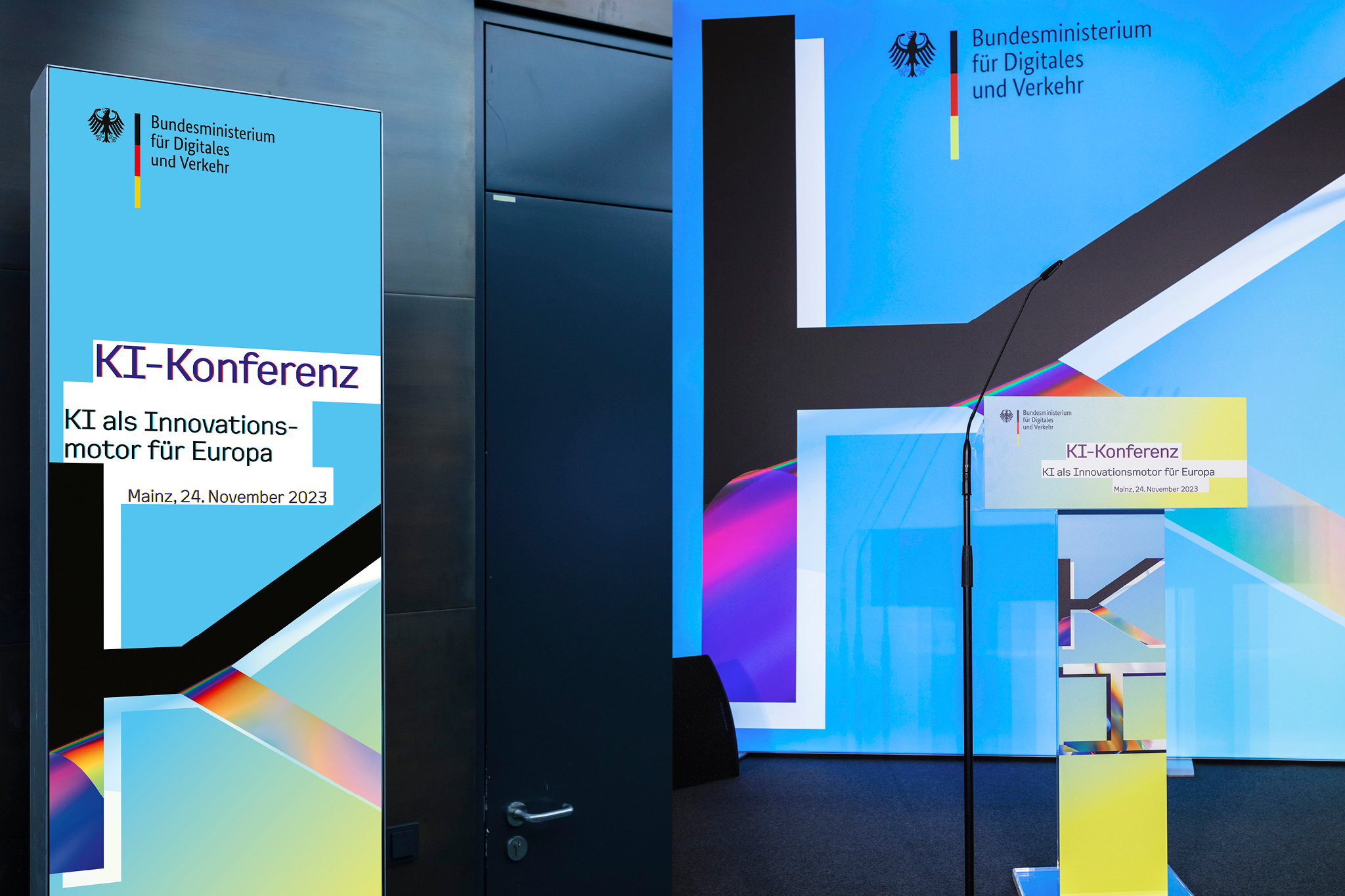 Die KI-Konferenz des Bundesministeriums für Digitales und Verkehr (BMDV) fand im November 2023 in Mainz unter dem Motto »KI als Innovationsmotor für Europa« statt. Ziel war es, aktuelle Entwicklungen, Herausforderungen und Chancen im Bereich der Künstlichen Intelligenz zu diskutieren und zu erkunden. Vertreter:innen aus Wirtschaft, Wissenschaft und Zivilgesellschaft aus ganz Europa kamen zusammen, um über die Verflechtung von Wettbewerbsfähigkeit und Vertrauenswürdigkeit im Kontext von KI zu sprechen. Schwerpunktthemen waren unter anderem Robotik und die verantwortungsvolle Nutzung von KI.