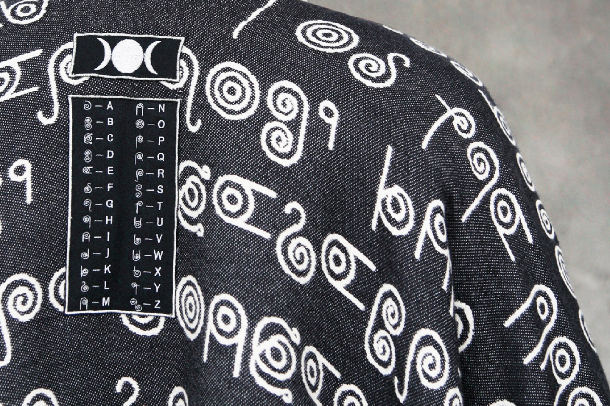 Die Schrift wird von der Künstlerin für magische/religiöse Texte auf Ponchos verwendet, die Ihre TrägerInnen schützen sollen. Sie geht zurück auf die Frühkultur der Pikten im heutigen Schottland und wurde Ende des 19. Jahrhundert als Geheimschrift neureligiöser Gruppen verwendet.