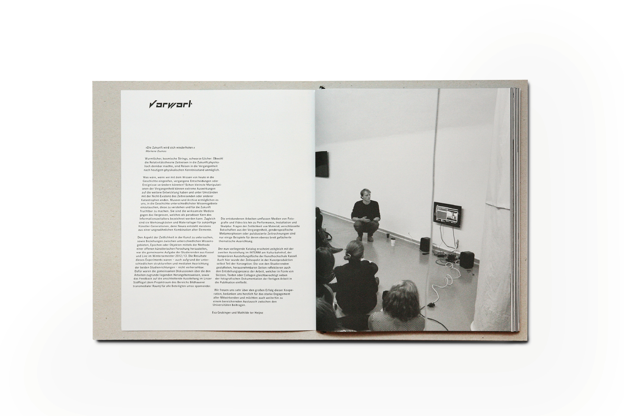 Die Publikation »Zurück in die Zukunft« erschien im Rahmen eines Kooperations-Projekts der Klassen Eva Grübinger der Kunstuniversität Linz und der Klasse ter Heijne der Kunsthochschule Kassel, das im Wintersemester 2012/13 stattfand und in dessen Rahmen die Studierenden neue Projekte entwickelten.